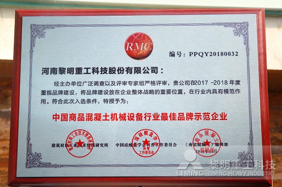 經(jīng)主辦單位廣泛調(diào)查以及評(píng)審專家組嚴(yán)格評(píng)審,黎明重工2017-2018年度重視品牌建設(shè)的突出表現(xiàn),在中國(guó)商品混凝土行業(yè)企業(yè)專家委員會(huì)第四屆第二次會(huì)議上,黎明重工獲得“中國(guó)商品混凝土機(jī)械設(shè)備行業(yè)更佳品牌示范單位”。