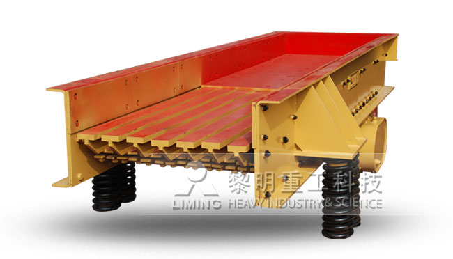 振動給料機又稱振動喂料機,是黎明重工為均勻輸送大塊物料而設(shè)計的新型振動給料機,它采用雙偏心軸激振器的結(jié)構(gòu)特點,保證設(shè)備能承受大塊物料下落的沖擊,大大提高了其給料能力。在生產(chǎn)流程中可把塊狀、顆粒狀物料從貯料倉中均勻、定時、連續(xù)地送入受料裝置,在砂石生產(chǎn)線中可為破碎機械連續(xù)均勻地喂料,并對物料進行粗篩分,從而防止受料裝置因進料不均而產(chǎn)生死機的現(xiàn)象,延長了設(shè)備使用壽命。目前,GZD系列振動給料機已廣泛應(yīng)用于冶金、煤礦、選礦、建材、化工、磨料等行業(yè)的破碎、篩分聯(lián)合設(shè)備中。
